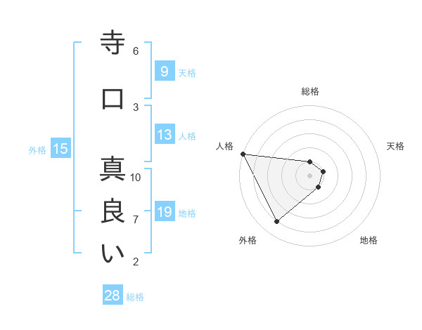 寺口 真良いさんの人格は13画の5点!