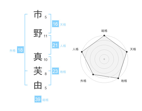 市野 真芙由さんの総格は39画の5点!