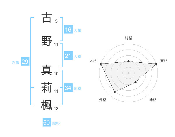 古野 真莉楓さんを姓名の画数から五運を鑑定