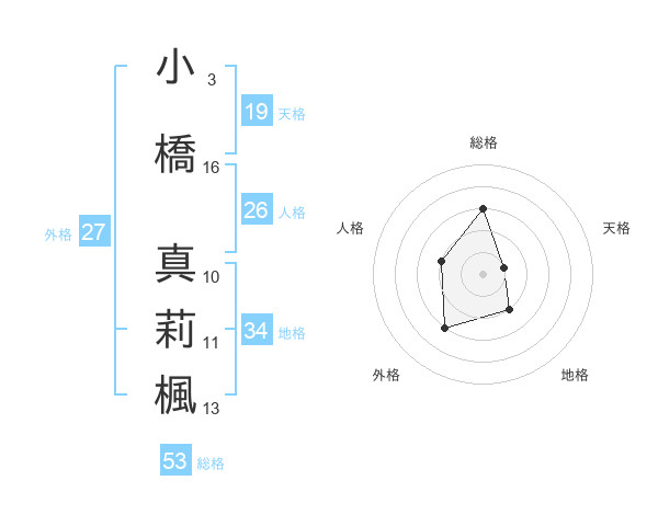 小橋 真莉楓さんを姓名の画数から五運を鑑定