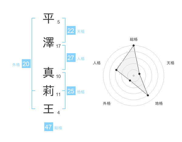 平澤 真莉王さんを姓名の画数から五運を鑑定