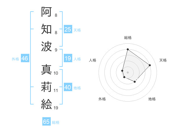 阿知波 真莉絵さんの総格は65画の4点!
