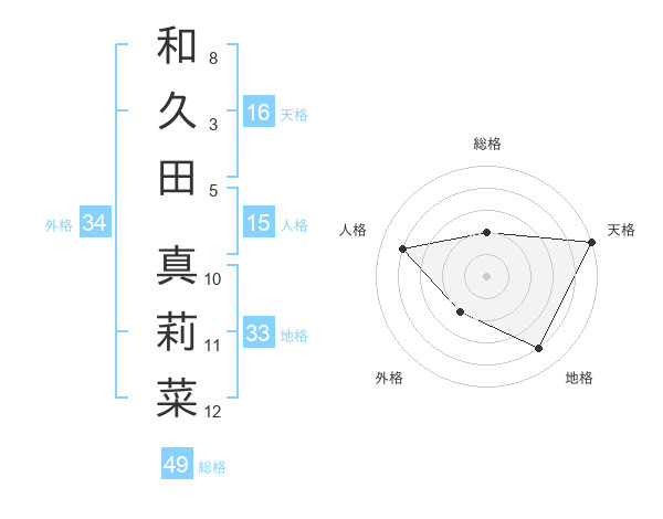 和久田 真莉菜さんを姓名の画数から五運を鑑定