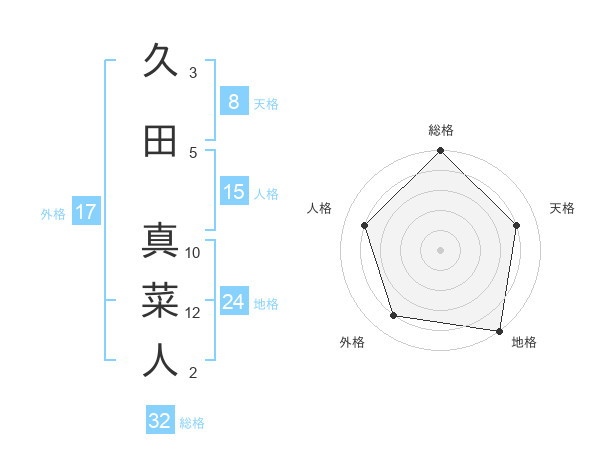 久田 真菜人さんを姓名の画数から五運を鑑定