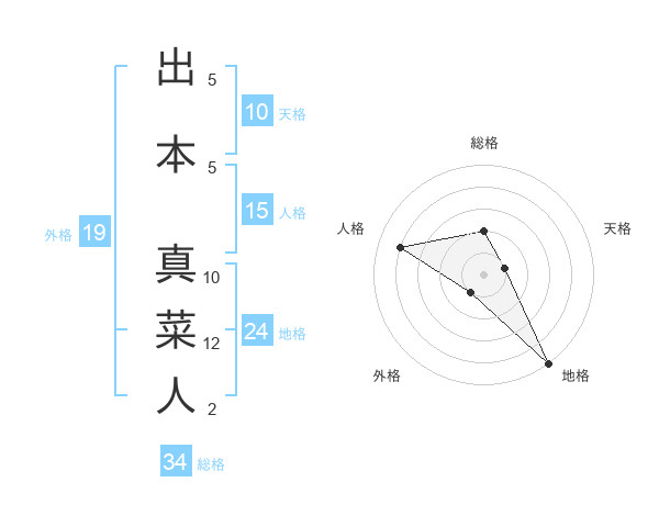 出本 真菜人さんを姓名の画数から五運を鑑定