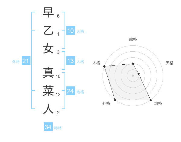 早乙女 真菜人さんの総格は34画の2点!