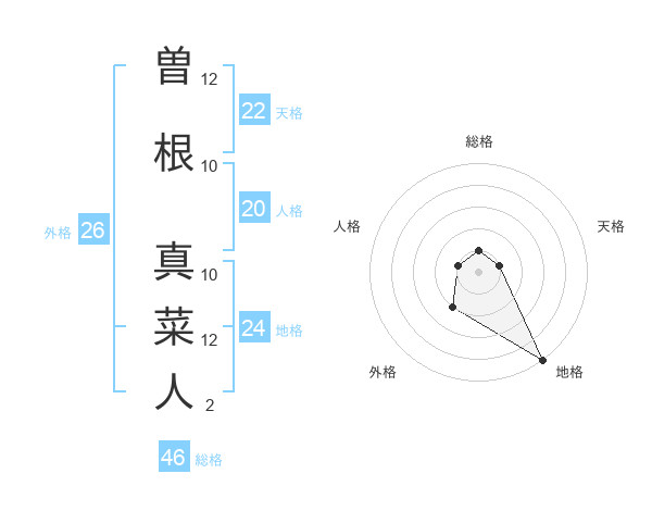 曽根 真菜人さんを姓名の画数から五運を鑑定