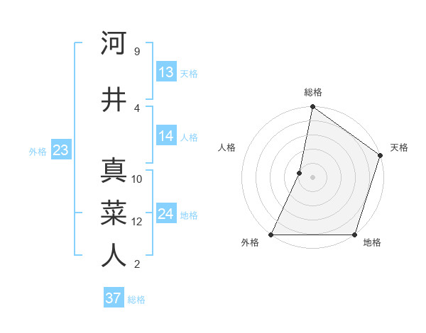 河井 真菜人さんを姓名の画数から五運を鑑定