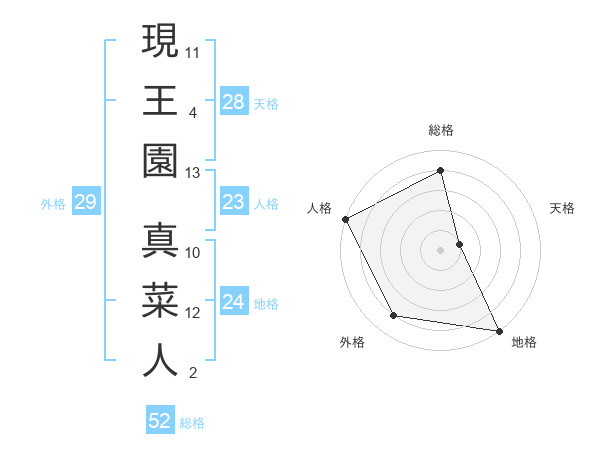 現王園 真菜人さんの総格は52画の4点!