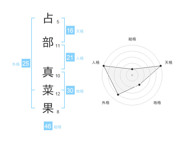 占部 真菜果さんの天格は16画の5点!