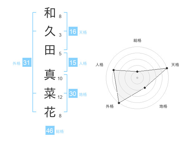 和久田 真菜花さんを姓名の画数から五運を鑑定