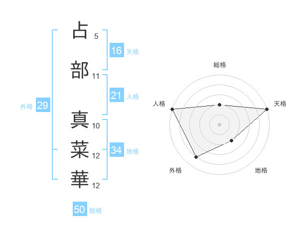 占部 真菜華さんを姓名の画数から五運を鑑定
