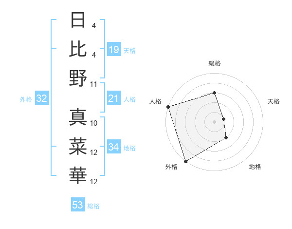 日比野 真菜華さんを姓名の画数から五運を鑑定