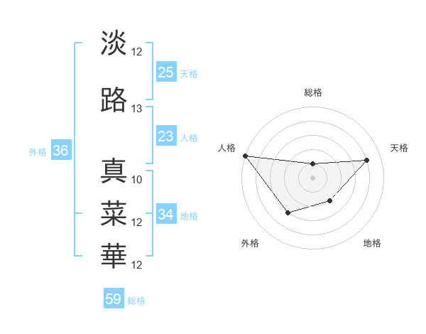 淡路 真菜華さんの総格は59画の1点!