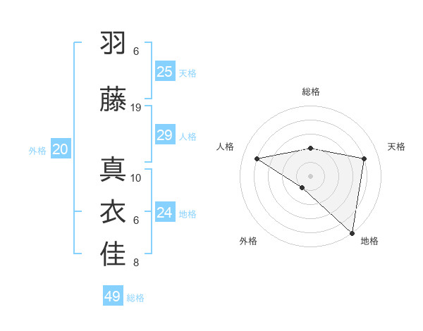 羽藤 真衣佳さんの地格は24画の5点!