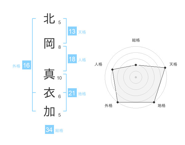 北岡 真衣加さんを姓名の画数から五運を鑑定
