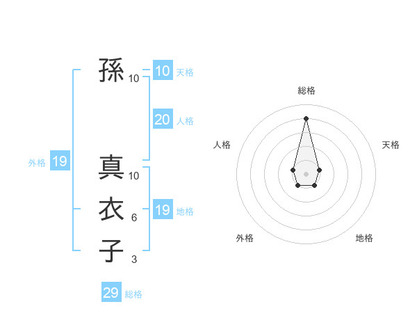 孫 真衣子さんの総格は29画の4点!