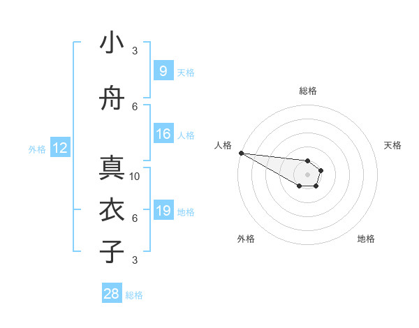 小舟 真衣子さんを姓名の画数から五運を鑑定