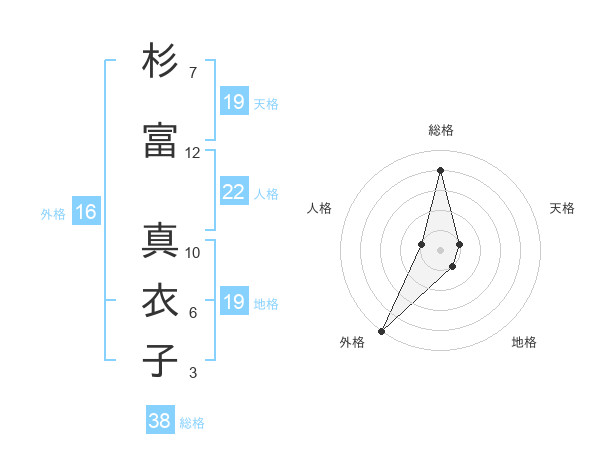 杉富 真衣子さんの総格は38画の4点!