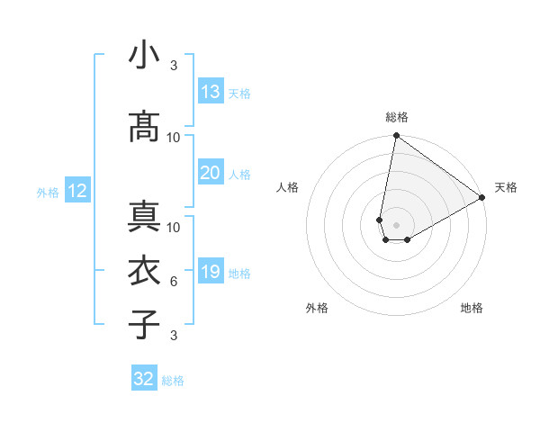 小髙 真衣子さんの天格は13画の5点!