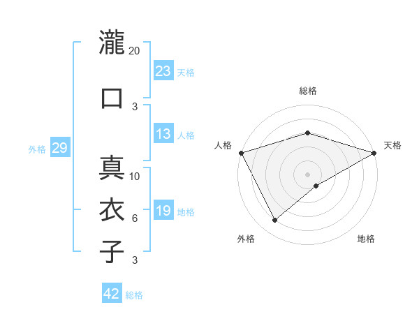 瀧口 真衣子さんを姓名の画数から五運を鑑定