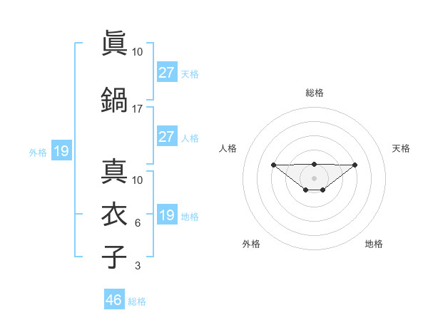 眞鍋 真衣子さんの天格は27画の3点!