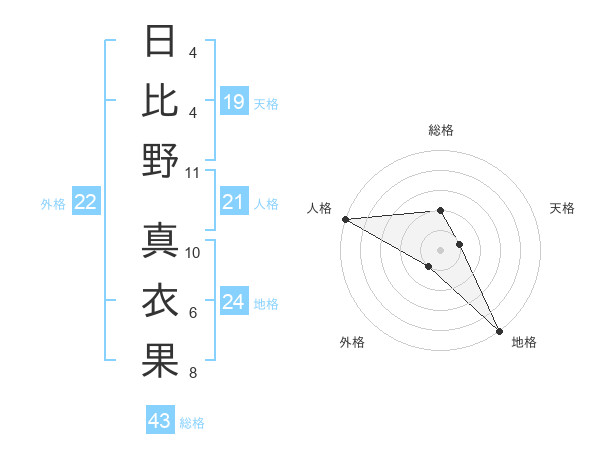 日比野 真衣果さんを姓名の画数から五運を鑑定