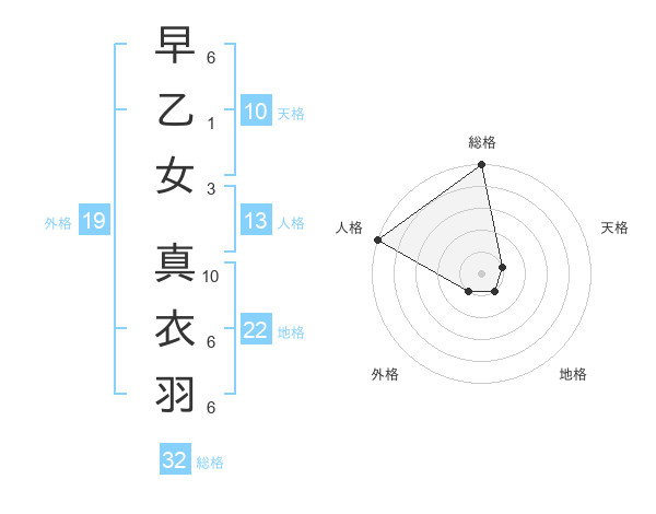 早乙女 真衣羽さんを姓名の画数から五運を鑑定