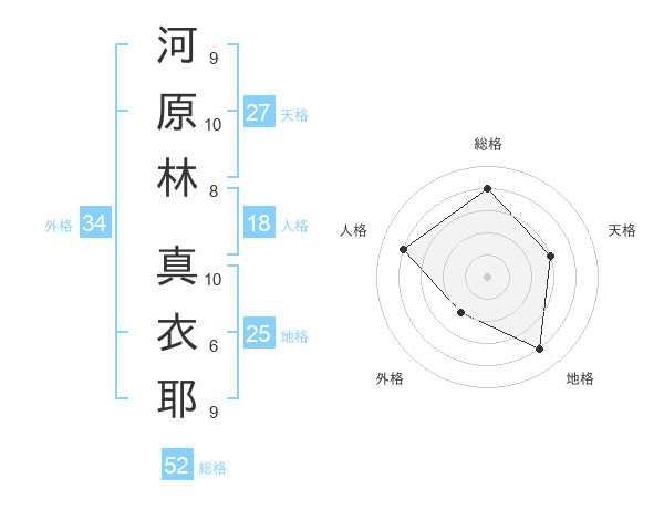 河原林 真衣耶さんを姓名の画数から五運を鑑定