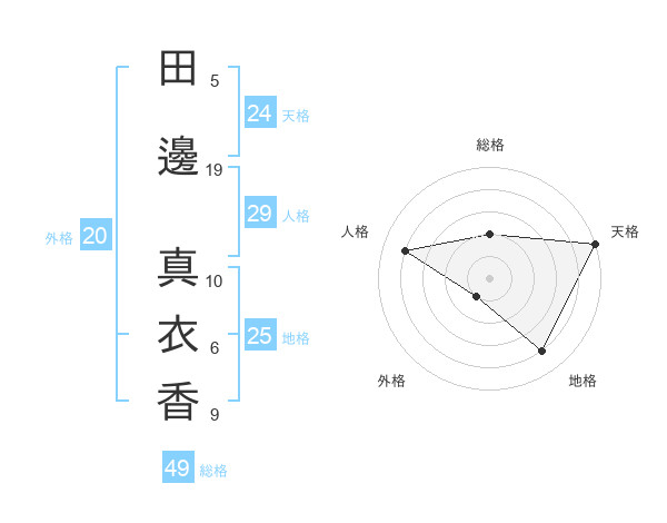 田邊 真衣香さんを姓名の画数から五運を鑑定