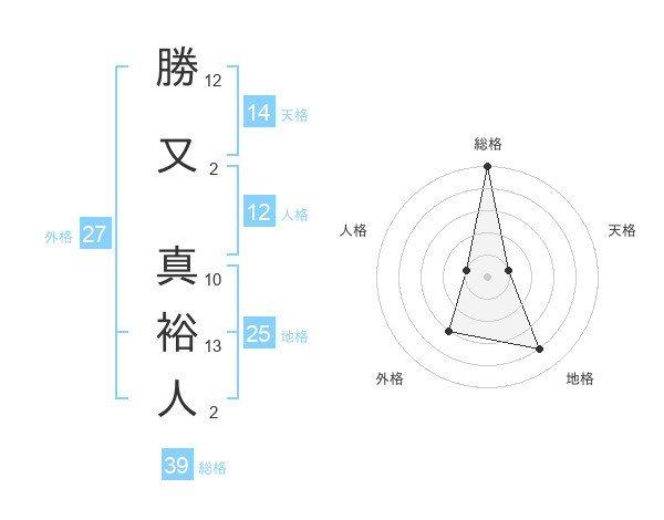 勝又 真裕人さんを姓名の画数から五運を鑑定