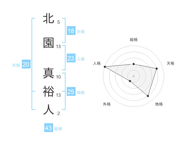 北園 真裕人さんを姓名の画数から五運を鑑定