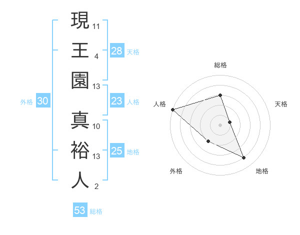 現王園 真裕人さんを姓名の画数から五運を鑑定