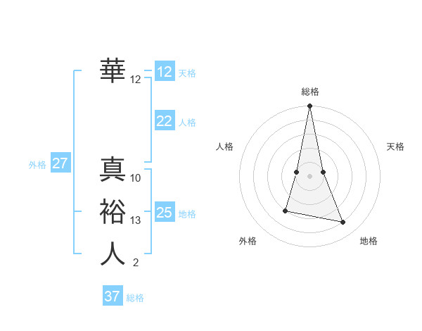 華 真裕人さんの総格は37画の5点!