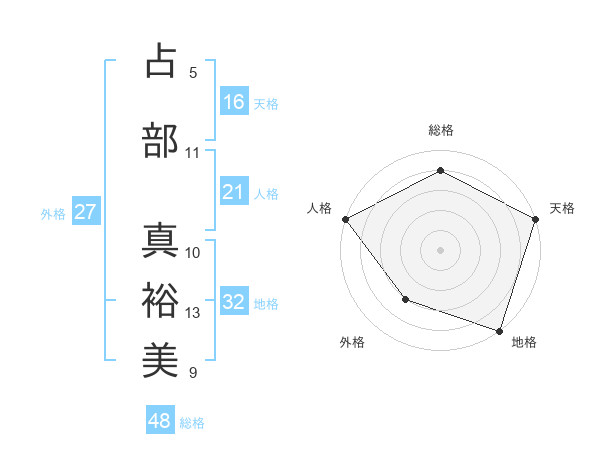 占部 真裕美さんを姓名の画数から五運を鑑定