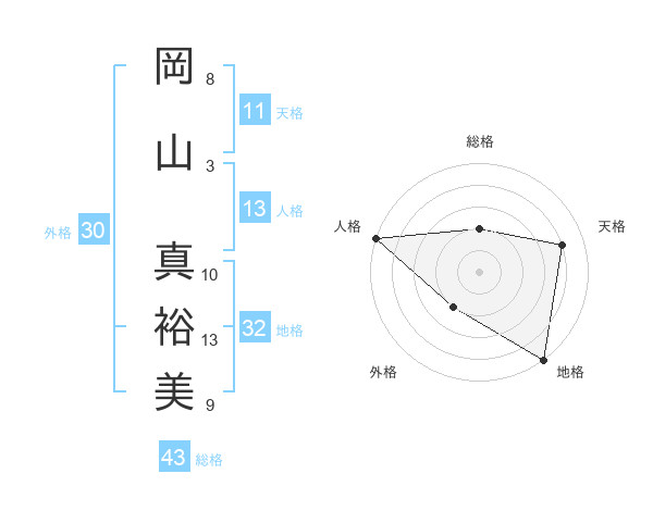 岡山 真裕美さんを姓名の画数から五運を鑑定