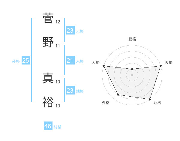 菅野 真裕さんの地格は23画の5点!