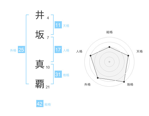 井坂 真覇さんの地格は31画の5点!