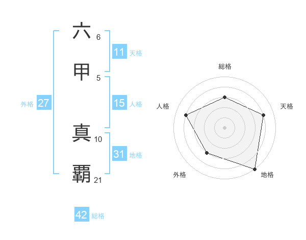 六甲 真覇さんを姓名の画数から五運を鑑定
