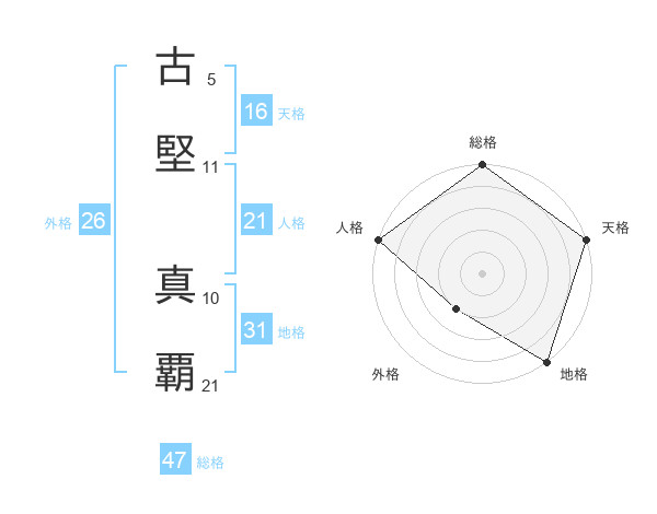 古堅 真覇さんを姓名の画数から五運を鑑定
