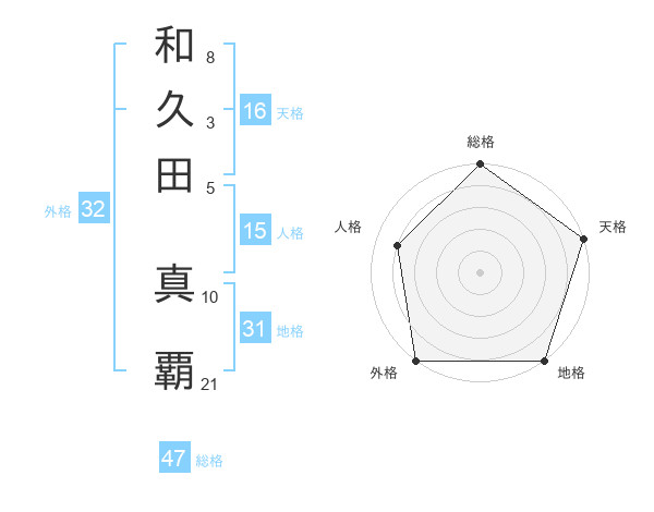 和久田 真覇さんを姓名の画数から五運を鑑定