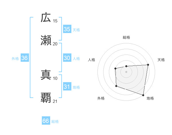 広瀬 真覇さんを姓名の画数から五運を鑑定
