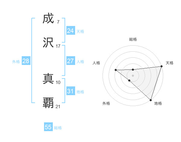 成沢 真覇さんを姓名の画数から五運を鑑定