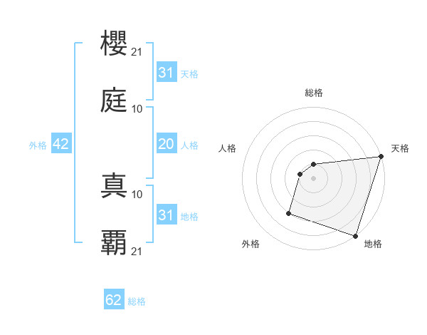 櫻庭 真覇さんの地格は31画の5点!
