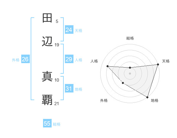 田辺 真覇さんの天格は24画の5点!