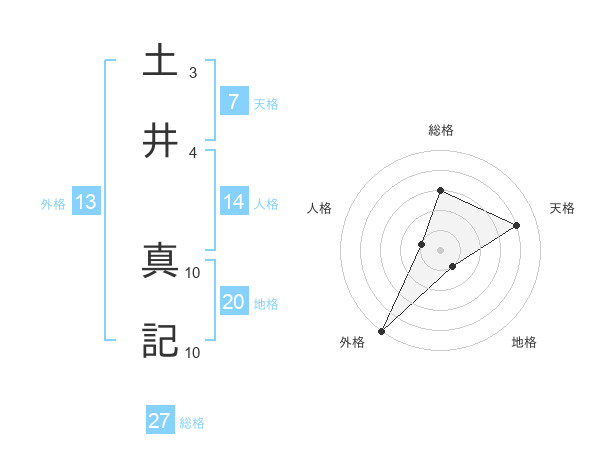 土井 真記さんの総格は27画の3点!