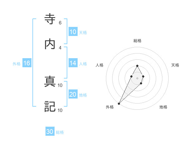 寺内 真記さんの総格は30画の2点!