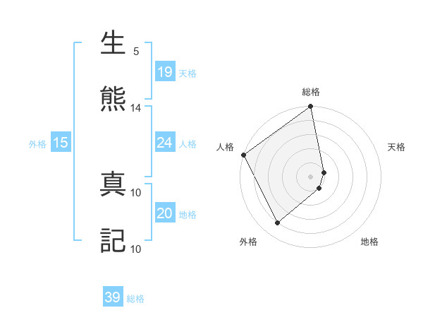 生熊 真記さんの総格は39画の5点!