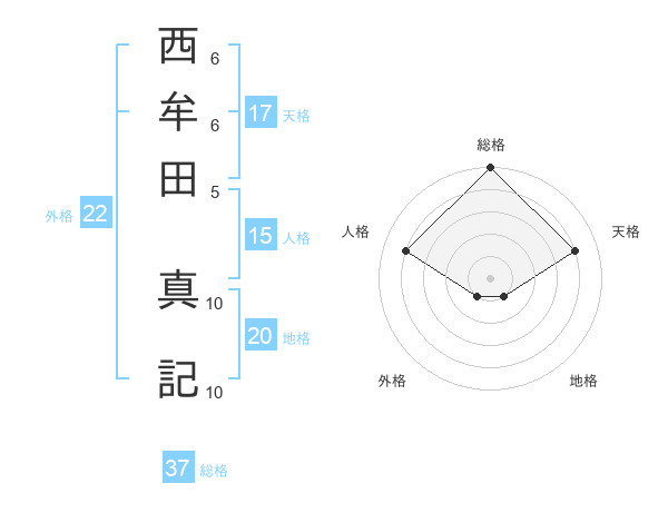 西牟田 真記さんを姓名の画数から五運を鑑定