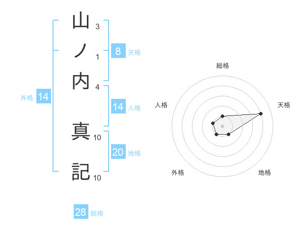 山ノ内 真記さんを姓名の画数から五運を鑑定